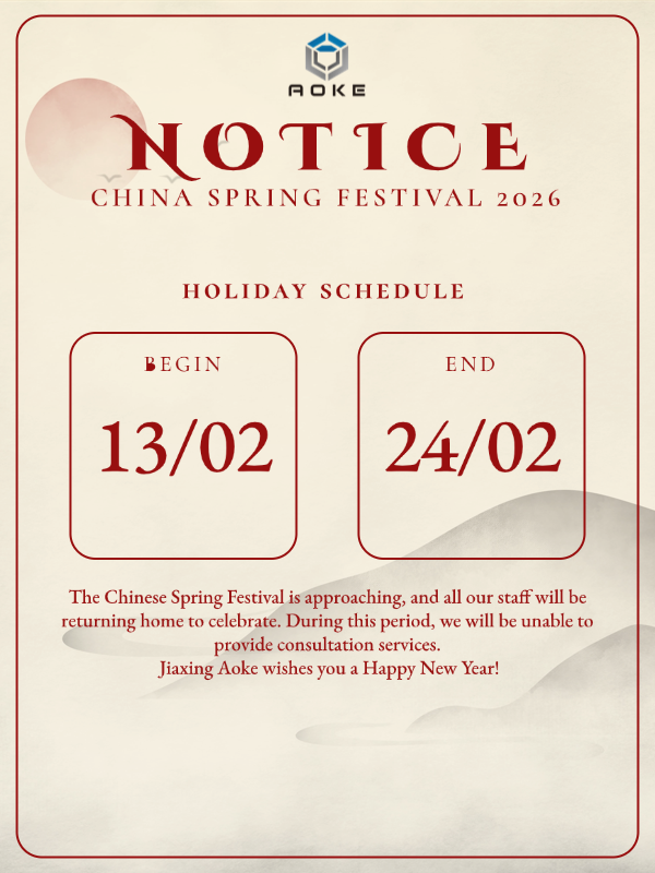 जियाक्सिंग एओके आपको और आपके परिवार को स्वास्थ्य और खुशी और आने वाले वर्ष के लिए शुभकामनाएं देता है!